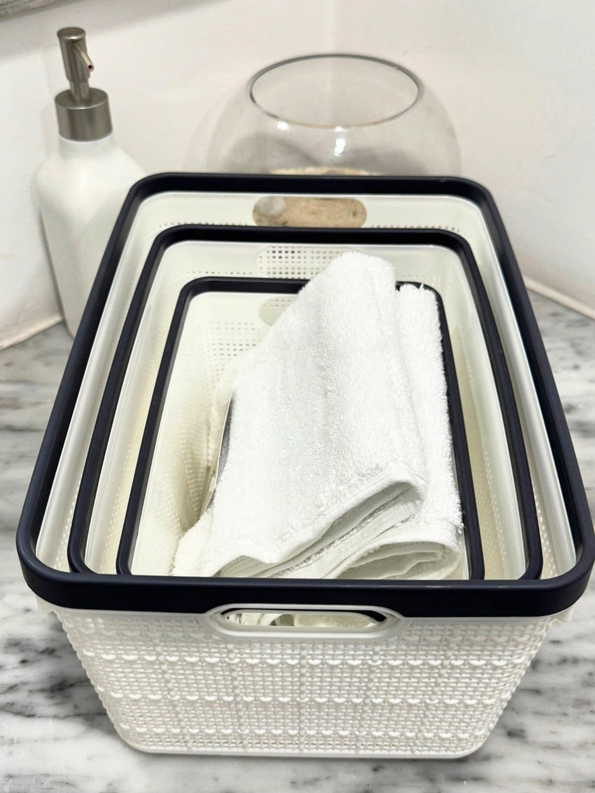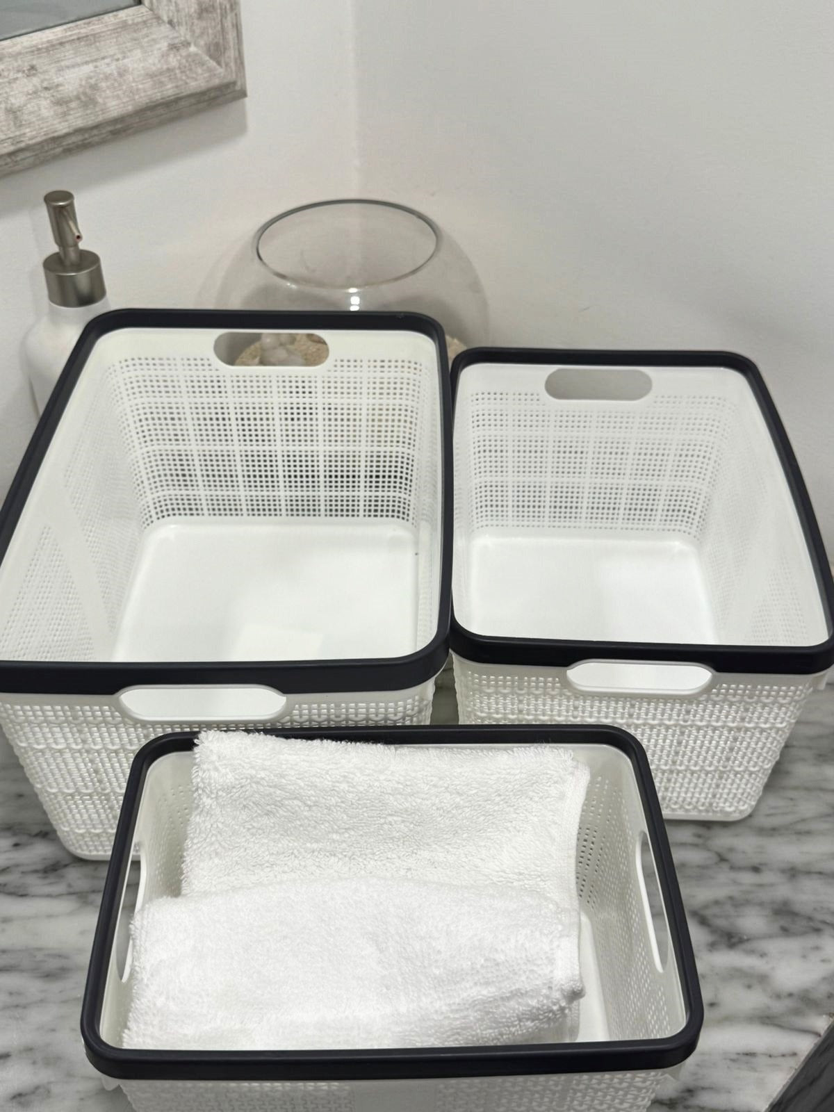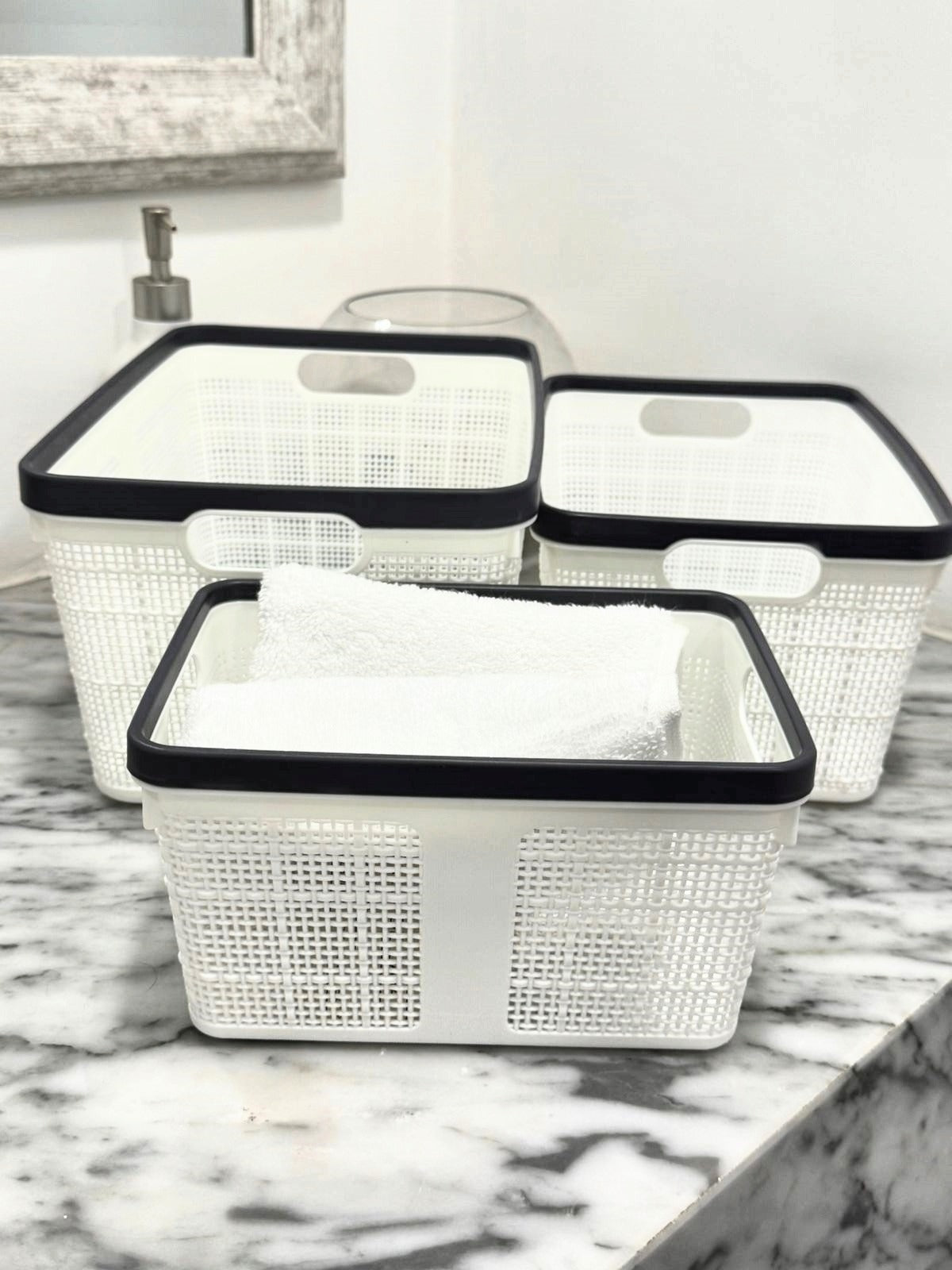 El set de 3 cestos organizadores blancos es la solución perfecta para mantener tu hogar ordenado con estilo y practicidad. Diseñados con un acabado limpio y moderno, estos cestos ofrecen amplio espacio para organizar ropa, accesorios, productos de baño o cualquier artículo del hogar. Su estructura resistente garantiza durabilidad, mientras que su diseño minimalista se adapta fácilmente a cualquier decoración. Versátiles y funcionales, estos organizadores son ideales para quienes buscan combinar organización y estética en cada espacio.